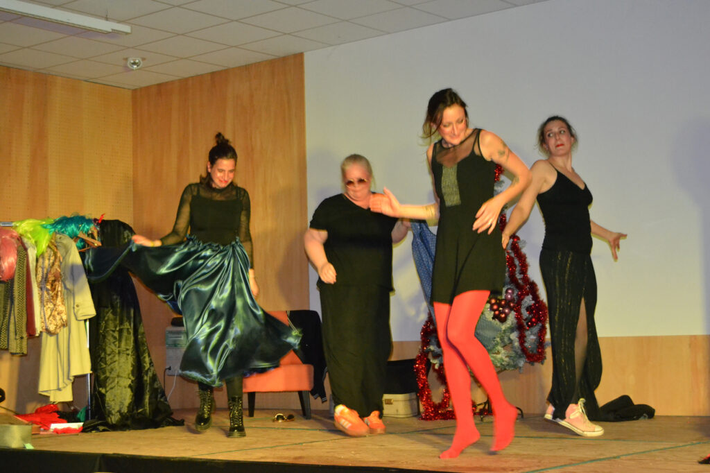 En effet, rien n’est écrit à l’avance ou presque… Les sketchs s’inventent sous vos yeux car les joueuses incarnent avec complicité des personnages hauts en couleur, dans des situations rocambolesques, selon vos thèmes tirés au sort.